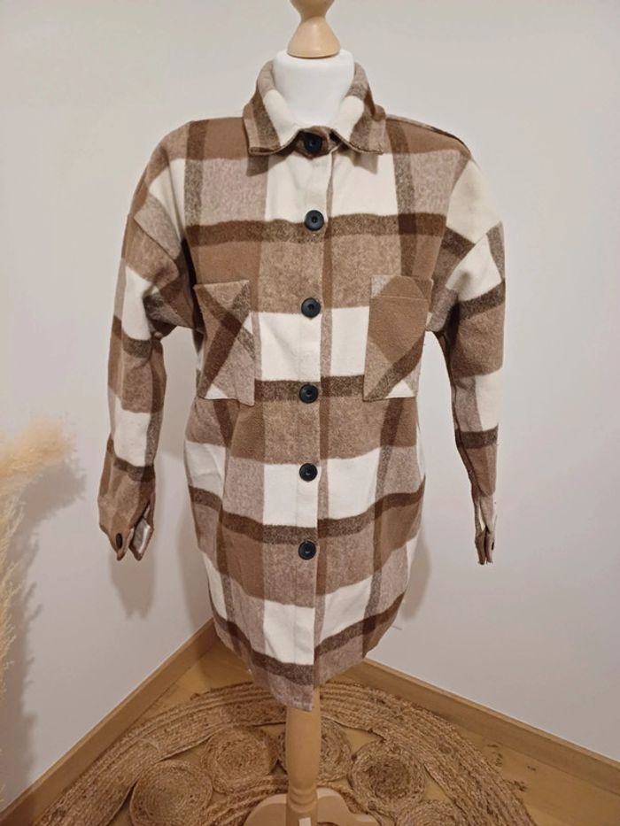 Veste chemise à carreaux marron/beige taille S/M 36/38 - photo numéro 1