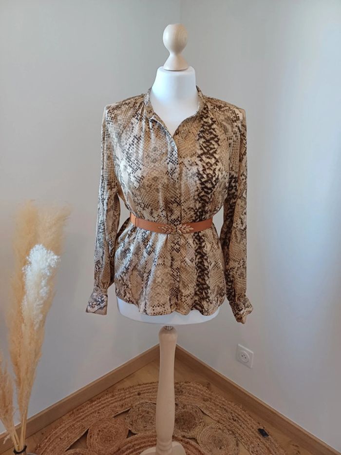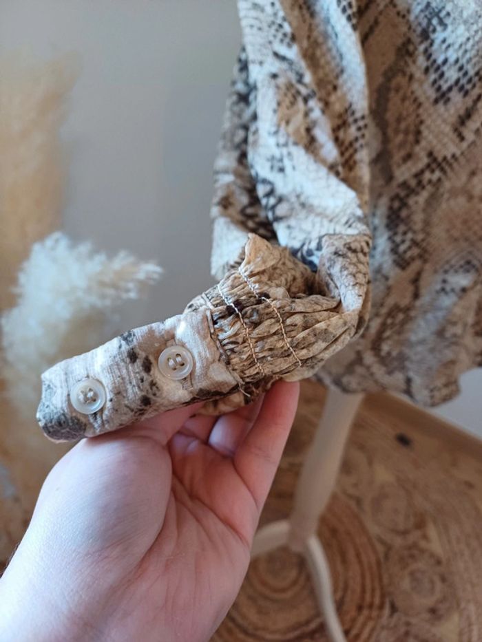 Chemise beige boutonnée à manches longues avec imprimé python/serpent marque H&M taille XS mais qui taille comme un S 36. La ceinture n'est pas incluse. Très bon état. Longueur: 63cm #paulineragot_femmetailles #paulineragot_hauttailles #hm #handm #hetm #mancheslongues #ml #boutonnée #imprimépython #imprimeserpent #imprimeanimal #beige #simple #basic #basique #classic #classique #tendance #vintage #original #glamour #élégant #romantique #bohème #classe #chic #habillé #sortie #soirée #fete #cocktail #ceremonie #événement #misaison #automnehiver #printempsété #entretiendembauche #bureau #workinggirl #sortieentreamis #repasenfamille #dinerenamoureux #glamour #élégant #romantique #boheme #sexy #femmefatale #fetesdefindannée #Noël #saintvalentin #passion