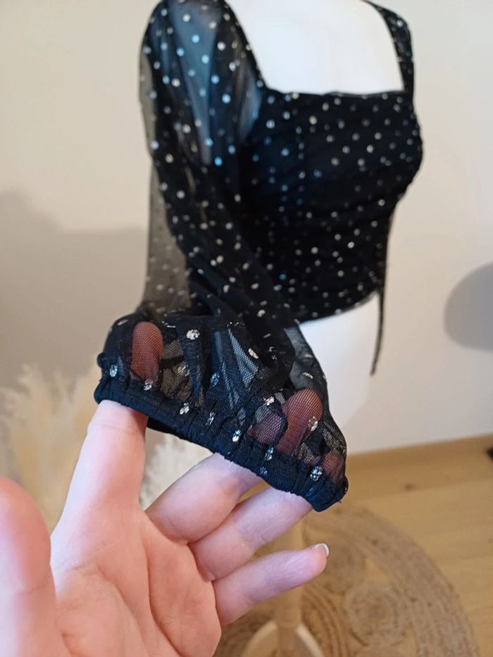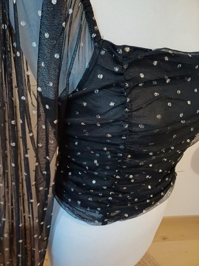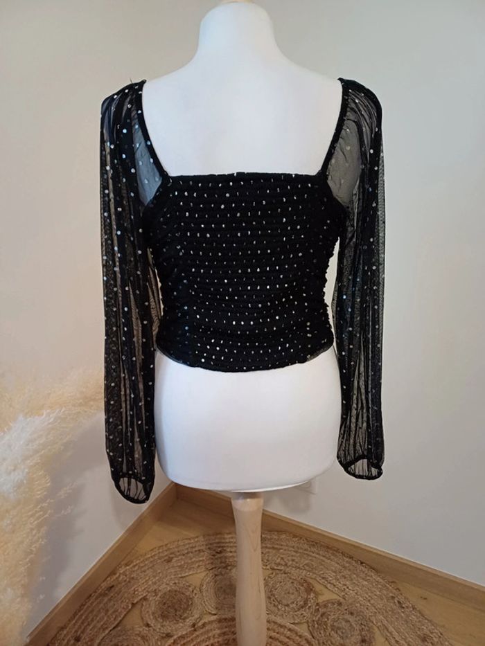 Top court noir à pois argentés Clockhouse taille S 36 - photo numéro 6