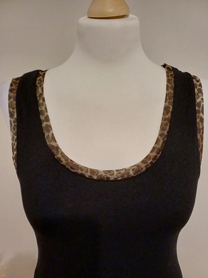 Débardeur noire sans manches avec détails en imprimé Léopard 🐆 et col rond taille S 36. Très bon état. Longueur: 65cm Composition: 86% Viscose et 4% Elasthane #paulineragot_femmetailles #paulineragot_hauttailles #débardeurnoir #impriméléopard #sansmanches #colrond #noir #moulant #presducorps #simple #basic #basique #classic #classique #tendance #vintage #original #glamour #élégant #romantique #bohème #classe #chic #habillé #sortie #soirée #fete #cocktail #ceremonie #événement #misaison #automnehiver #printempsété #entretiendembauche #bureau #workinggirl #sortieentreamis #repasenfamille #dinerenamoureux #glamour #élégant #romantique #boheme #sexy #femmefatale #fetesdefindannée #Noël #saintvalentin #passion #rétro #jourdelan #réveillon #cadeau #ideedecadeau #cadeaudenoel #nouvelan