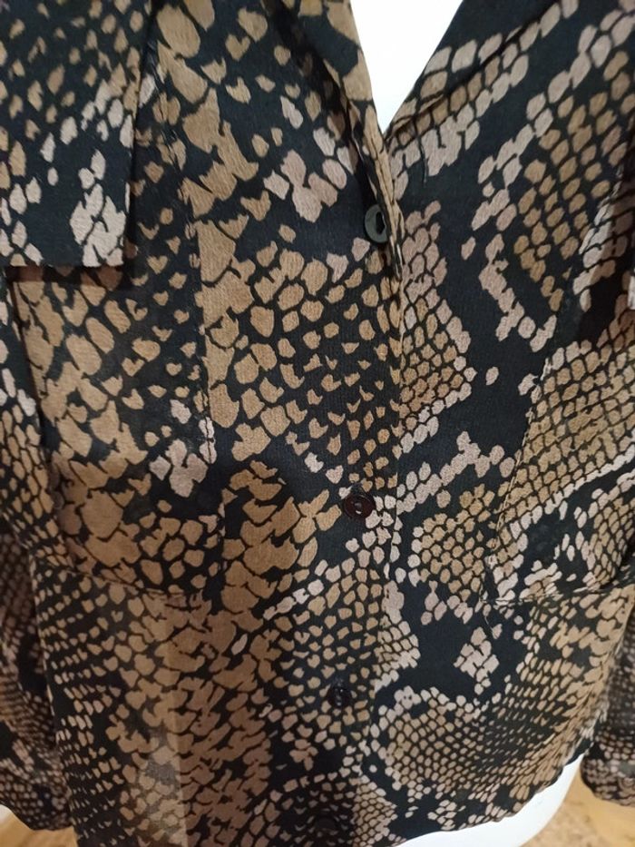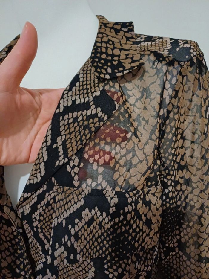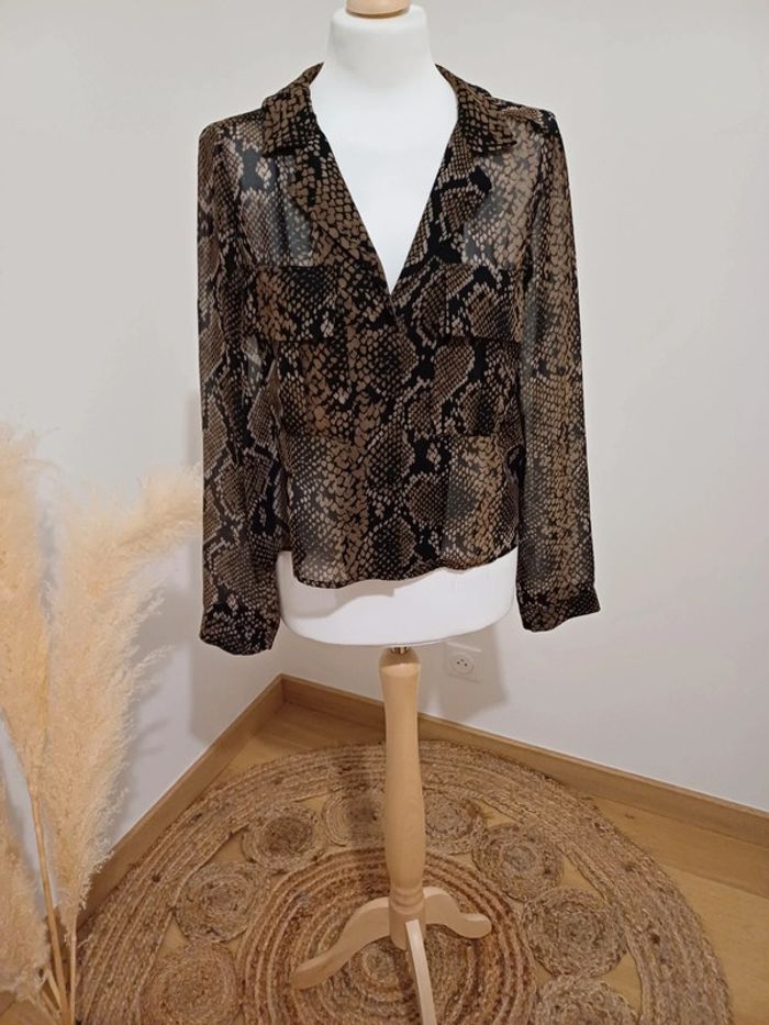 Blouse transparente fluide à imprimé Serpent avec manches longues et col en V taille S 36. Très bon état. Longueur: 50cm #paulineragot_femmetailles #paulineragot_hauttailles #imprimeserpent #mancheslongues #ml #colenv #fluide #simple #basic #basique #classic #classique #tendance #vintage #original #glamour #élégant #romantique #bohème #classe #chic #habillé #sortie #soirée #fete #cocktail #ceremonie #événement #misaison #automnehiver #printempsété #entretiendembauche #bureau #workinggirl #sortieentreamis #repasenfamille #dinerenamoureux #glamour #élégant #romantique #boheme #sexy #femmefatale #fetesdefindannée #Noël #saintvalentin #passion #rétro #jourdelan #réveillon #cadeau #ideedecadeau #cadeaudenoel #nouvelan