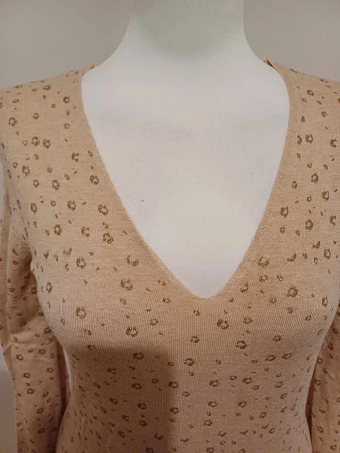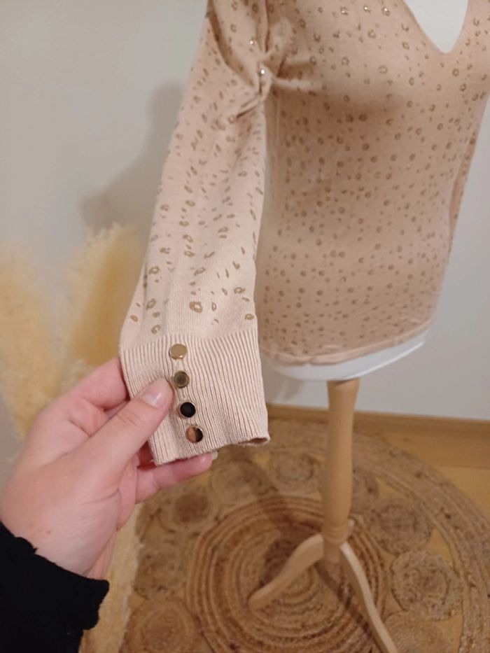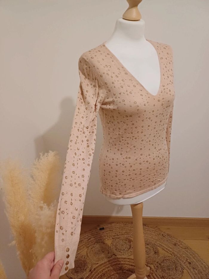 Pull léger rose/Abricot à manches longues avec col en V et imprimé Léopard 🐆 couleur doré marque Camaieu taille S 36. Très bon état. Longueur: 60cm #paulineragot_femmetailles #paulineragot_hauttailles #camaieu #mancheslongues #ml #impriméléopard #doré #rose #abricot #rosepale #roseclair #moulant #presducorps #colenv #simple #basic #basique #classic #classique #tendance #vintage #original #glamour #élégant #romantique #bohème #classe #chic #habillé #sortie #soirée #fete #cocktail #ceremonie #événement #misaison #automnehiver #printempsété #entretiendembauche #bureau #workinggirl #sortieentreamis #repasenfamille #dinerenamoureux #glamour #élégant #romantique #boheme #sexy #femmefatale #fetesdefindannée #Noël #saintvalentin #passion #rétro #jourdelan #réveillon #cadeau #ideedecadeau #cadeaudenoel #nouvelan