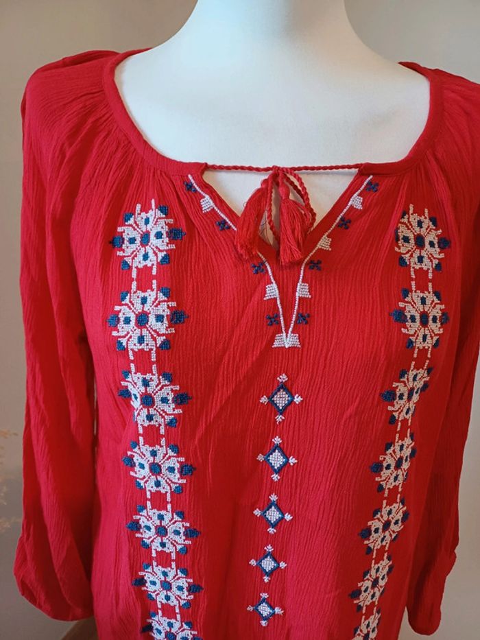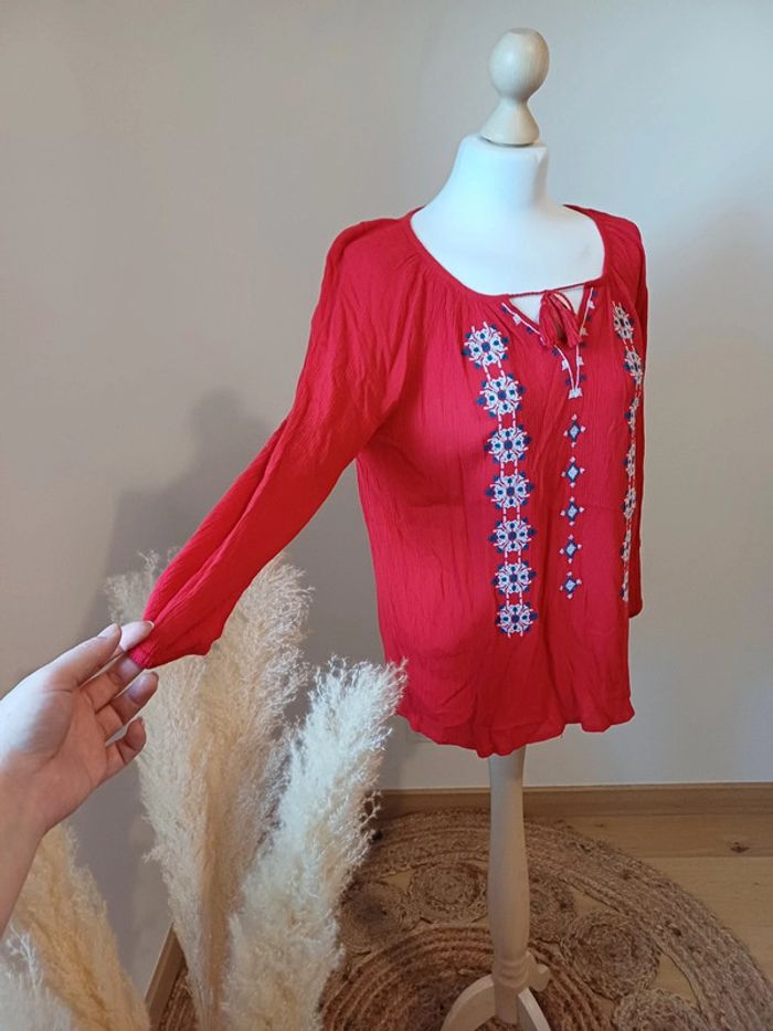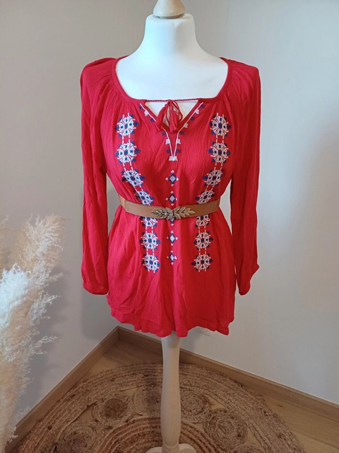 Blouse rouge casual à manches longues avec liens à nouer au décolleté et motifs tissés marque Armand Thiery taille S 36. La ceinture n'est pas incluse. Très bon état. Longueur: 65cm Composition: 100% Polyester #paulineragot_femmetailles #paulineragot_hauttailles #armandthiery #rouge #motifstissés #liensanoueraudecollete #noeud #simple #basic #basique #classic #classique #tendance #vintage #original #glamour #élégant #romantique #bohème #classe #chic #habillé #sortie #soirée #fete #cocktail #ceremonie #événement #misaison #automnehiver #printempsété #entretiendembauche #bureau #workinggirl #sortieentreamis #repasenfamille #dinerenamoureux #glamour #élégant #romantique #boheme #sexy #femmefatale #fetesdefindannée #Noël #saintvalentin #passion #rétro #jourdelan #réveillon #cadeau #ideedecadeau #cadeaudenoel #nouvelan