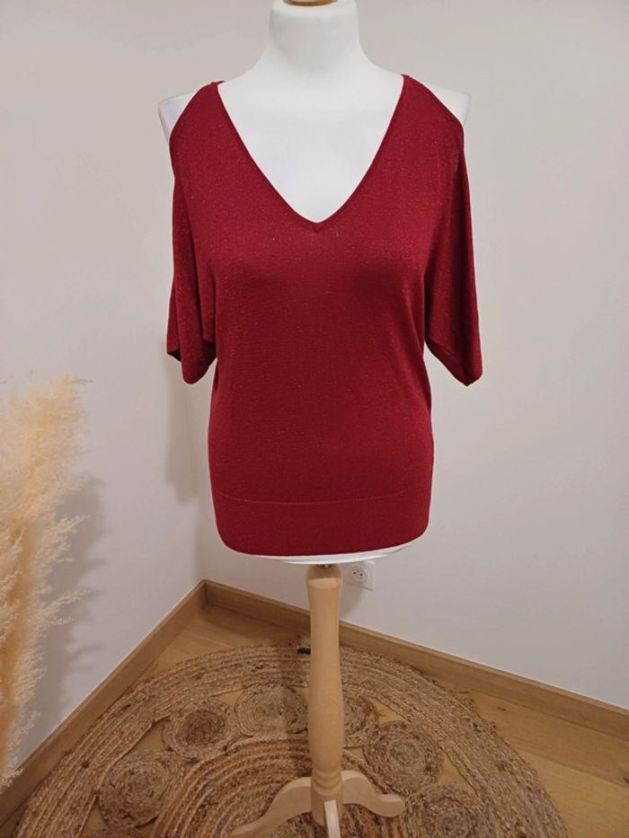 Blouse rouge/bordeaux pailletée Grain de Malice taille S 36 - photo numéro 9