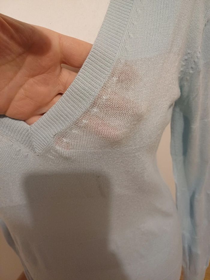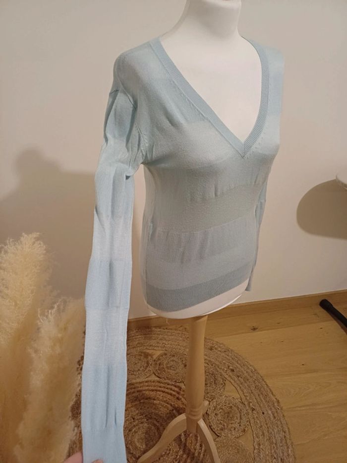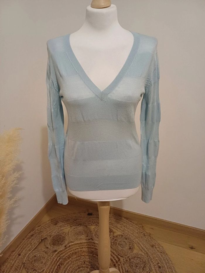 Pull fin bleu clair pas mal transparent à manches longues avec col en V taille S 36. Bon état. Longueur: 60cm #paulineragot_femmetailles #paulineragot_hauttailles #simple #basic #basique #classic #classique #tendance #vintage #original #glamour #élégant #romantique #bohème #classe #chic #habillé #sortie #soirée #fete #cocktail #ceremonie #événement #misaison #automnehiver #printempsété #entretiendembauche #bureau #workinggirl #sortieentreamis #repasenfamille #dinerenamoureux #glamour #élégant #romantique #boheme #sexy #femmefatale #fetesdefindannée #Noël #saintvalentin #passion #rétro #jourdelan #réveillon #cadeau #ideedecadeau #cadeaudenoel #nouvelan