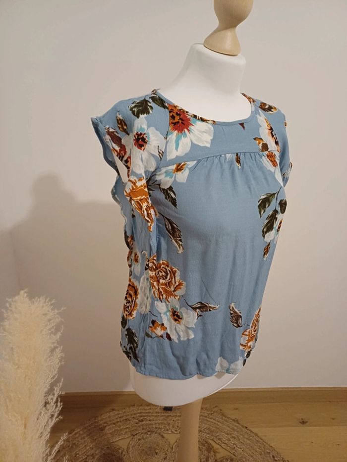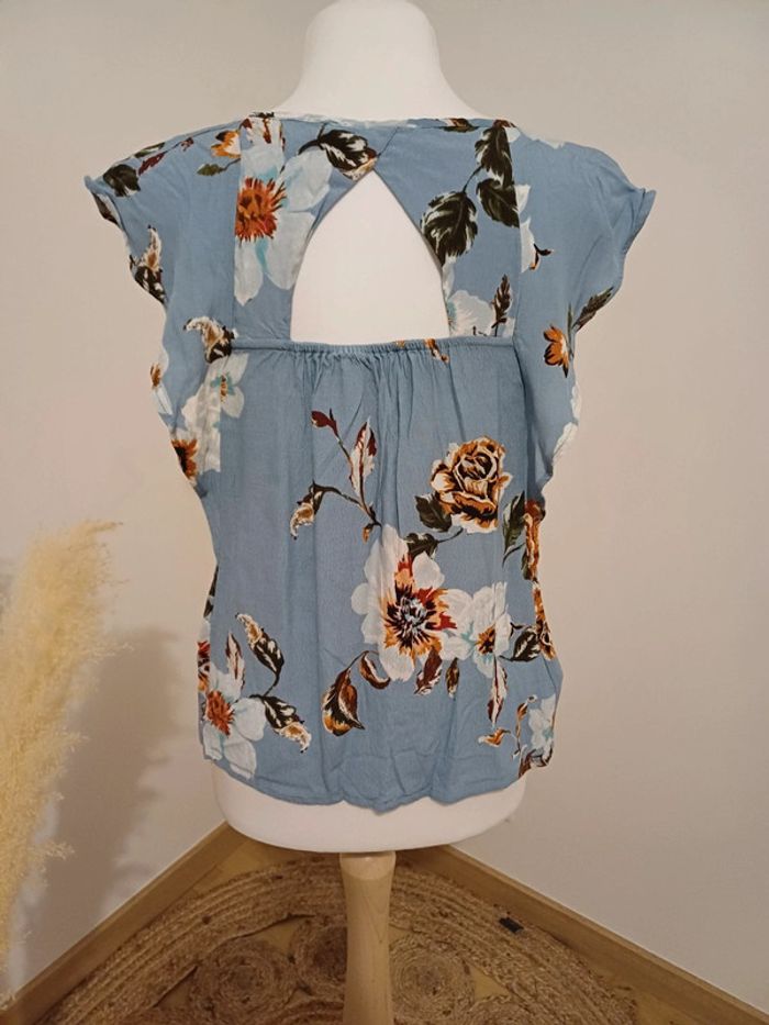 Blouse bleue claire Fleurie Promod taille S 36 - photo numéro 4