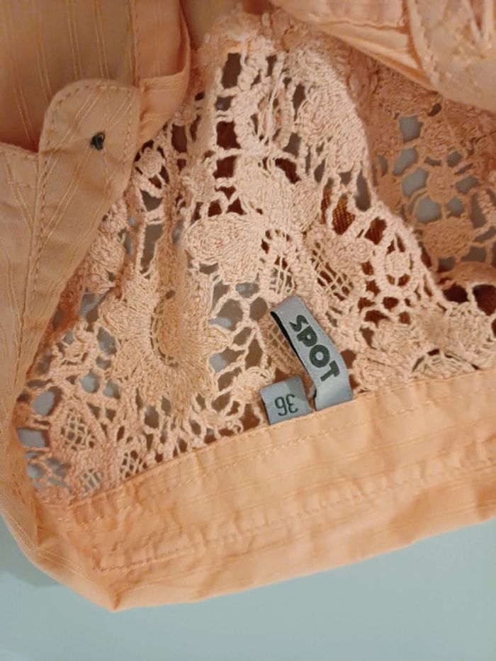 Chemise boutonnée couleur Abricot sans manches avec poches et détails en dentelle marque Spot taille S 36. Bon état. Longueur: 51cm Composition: 100% Coton #paulineragot_femmetailles #paulineragot_hauttailles #Spot #sansmanches #Abricot #chemiseboutonnee #boutons #poches #dentelle #Colenv #noeudenbas #simple #basic #basique #classic #classique #tendance #vintage #original #glamour #élégant #romantique #bohème #classe #chic #habillé #sortie #soirée #fete #cocktail #ceremonie #événement #misaison #automnehiver #printempsété #entretiendembauche #bureau #workinggirl #sortieentreamis #repasenfamille #dinerenamoureux #glamour #élégant #romantique #boheme #sexy #femmefatale #fetesdefindannée #Noël #saintvalentin #passion