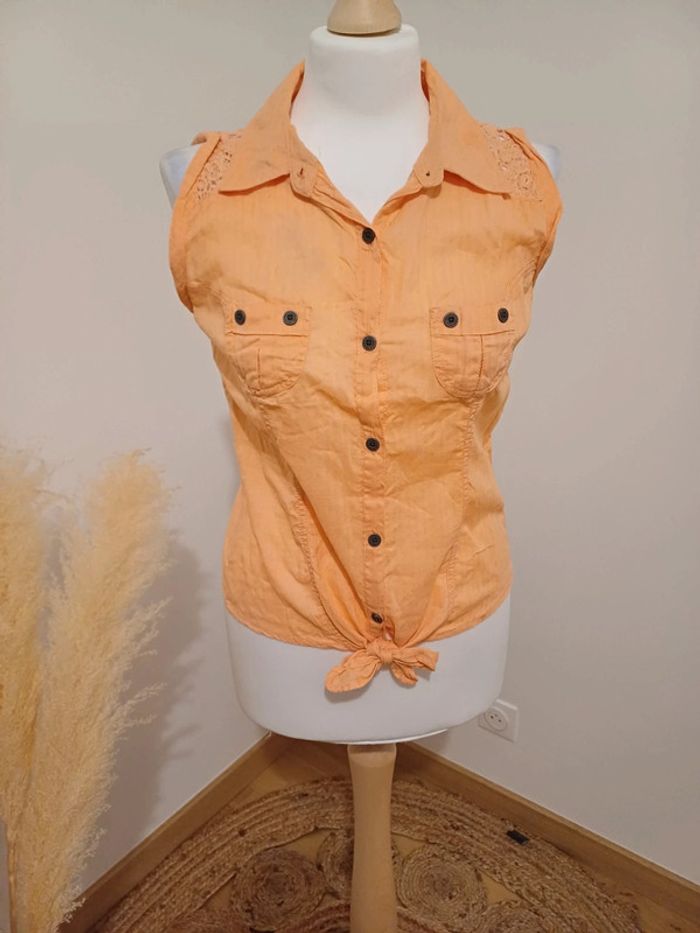 Chemise boutonnée sans manches couleur Abricot Spot taille S 36 - photo numéro 1