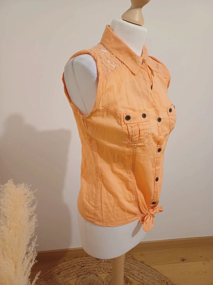 Chemise boutonnée sans manches couleur Abricot Spot taille S 36 - photo numéro 4
