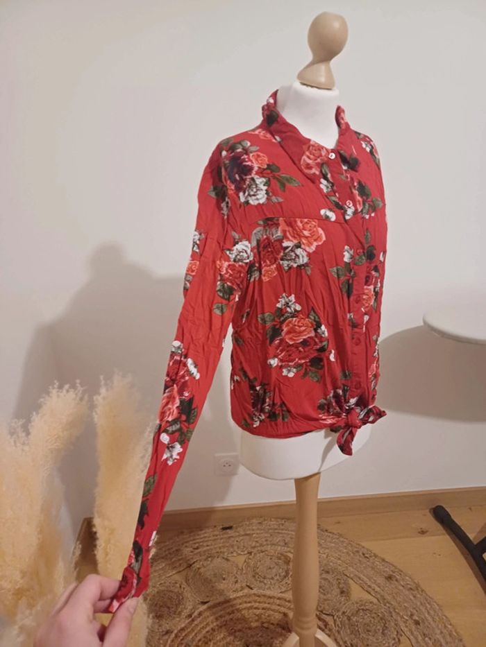 Chemise rouge Fleurie taille XS 34 - photo numéro 4