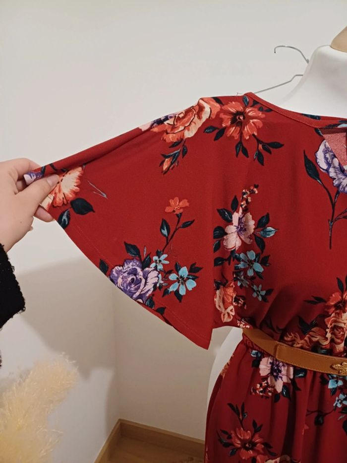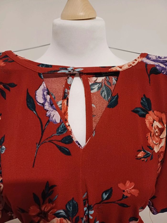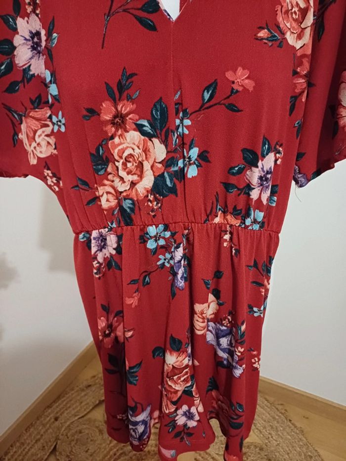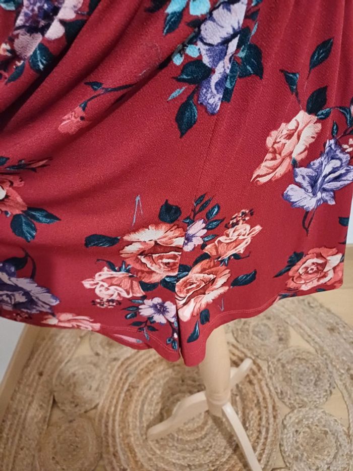 Combishort rouge/bordeaux fleurie Bershka taille S 36 - photo numéro 8