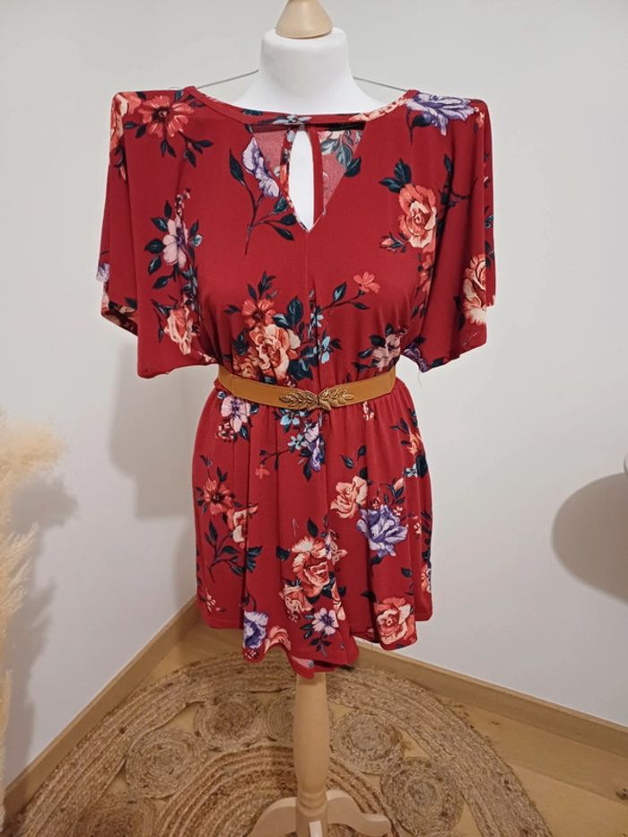 Combishort rouge/bordeaux fleurie Bershka taille S 36 - photo numéro 1