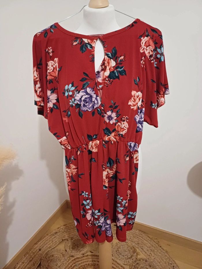 Combishort rouge/bordeaux fleurie Bershka taille S 36 - photo numéro 3