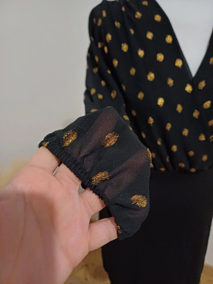 Robe noire chic cache-coeur à manches longues avec pois dorés marque New Collection taille S 36. Très bon état. Longueur: 85cm Composition: 40% Polyester, 55% Viscose et 5% Elasthane #paulineragot_femmetailles #paulineragot_robetailles #newcollection #cachecoeur #colenv #petiterobenoire #mancheslongues #ml #moulant #presducorps #poisdorés #simple #basic #basique #classic #classique #tendance #vintage #original #glamour #élégant #romantique #bohème #classe #chic #habillé #sortie #soirée #fete #cocktail #ceremonie #événement #misaison #automnehiver #printempsété #entretiendembauche #bureau #workinggirl #sortieentreamis #repasenfamille #dinerenamoureux #glamour #élégant #romantique #boheme #sexy #femmefatale #fetesdefindannée #Noël #saintvalentin #passion #rétro #jourdelan #réveillon #cadeau #ideedecadeau #cadeaudenoel #nouvelan