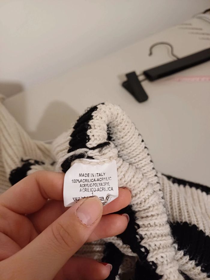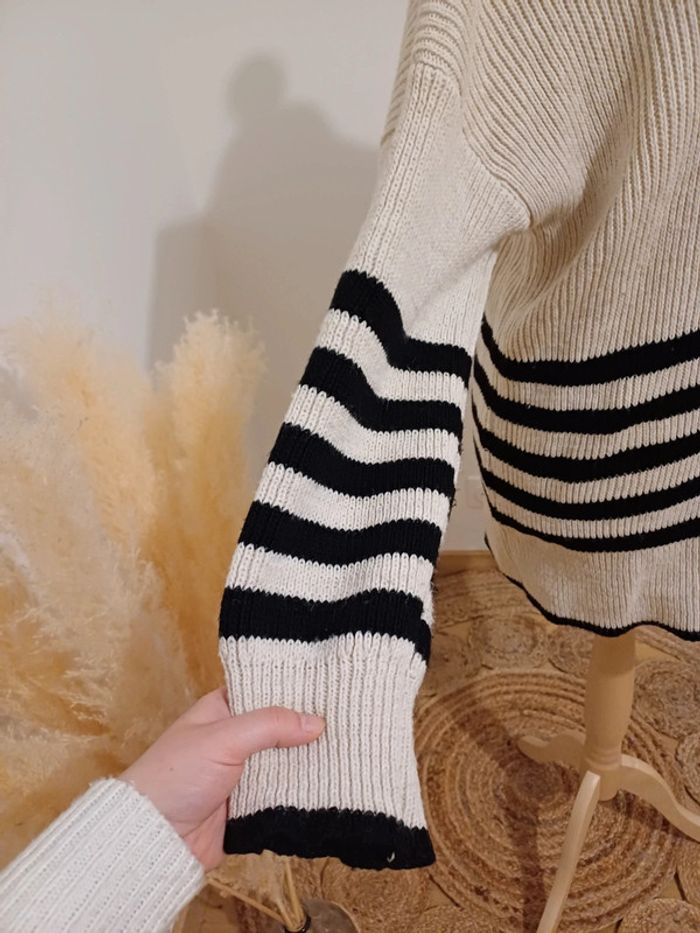 Robe pull chaude rayée à manches longues avec col roulé couleur crème et noir taille L/XL 40/42. La ceinture n'est pas incluse. Très bon état. Longueur: 85cm Composition: 100% Acrylique #paulineragot_femmetaillel #paulineragot_robetaillel #paulineragot_femmetaille42 #paulineragot_robetaille42 #madeinitaly #mancheslongues #ml #colroule #crème #noire #rayée #chaude #polaire #hiver #robepull #colroulé #simple #basic #basique #classic #classique #tendance #vintage #original #glamour #élégant #romantique #bohème #classe #chic #habillé #sortie #soirée #fete #cocktail #ceremonie #événement #misaison #automnehiver #printempsété #entretiendembauche #bureau #workinggirl #sortieentreamis #repasenfamille #dinerenamoureux #glamour #élégant #romantique #boheme #sexy #femmefatale #fetesdefindannée #Noël #saintvalentin #passion #rétro #jourdelan #réveillon #cadeau #ideedecadeau #cadeaudenoel #nouvelan