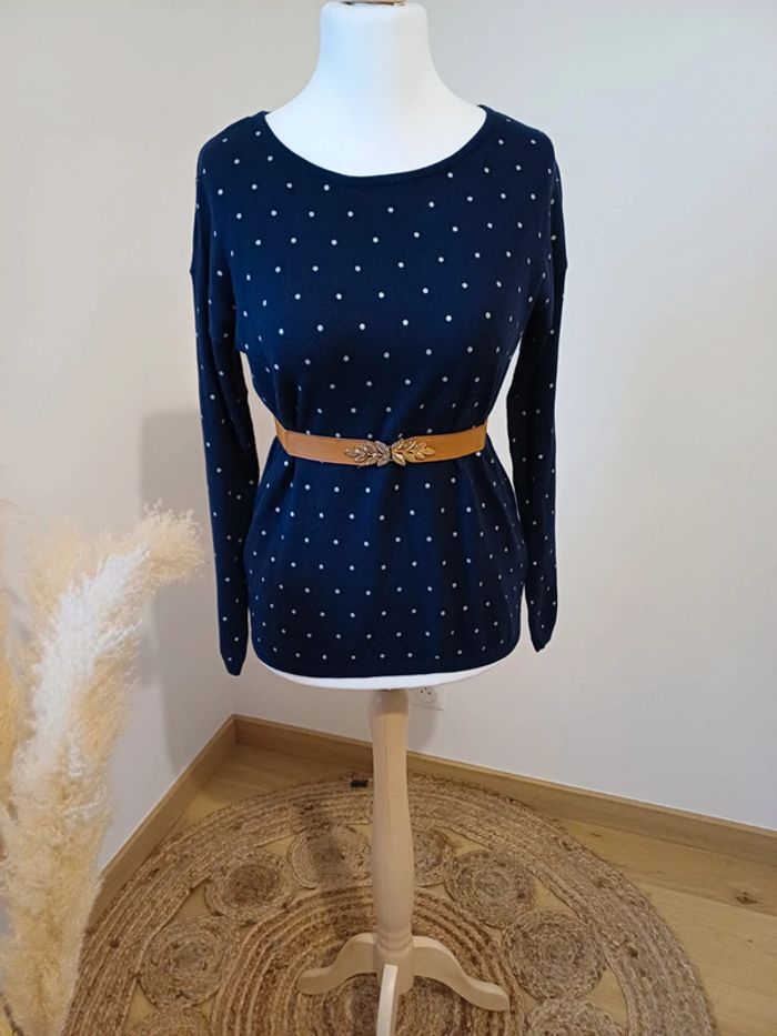 Pull fin bleu marine à pois argentés In Extenso taille M 38 - photo numéro 1