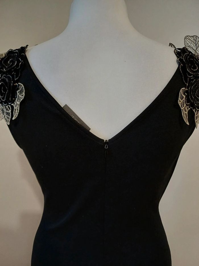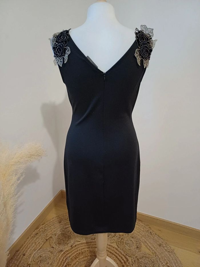 Robe noire chic avec fleurs aux épaules Yessica taille S 36 - photo numéro 3