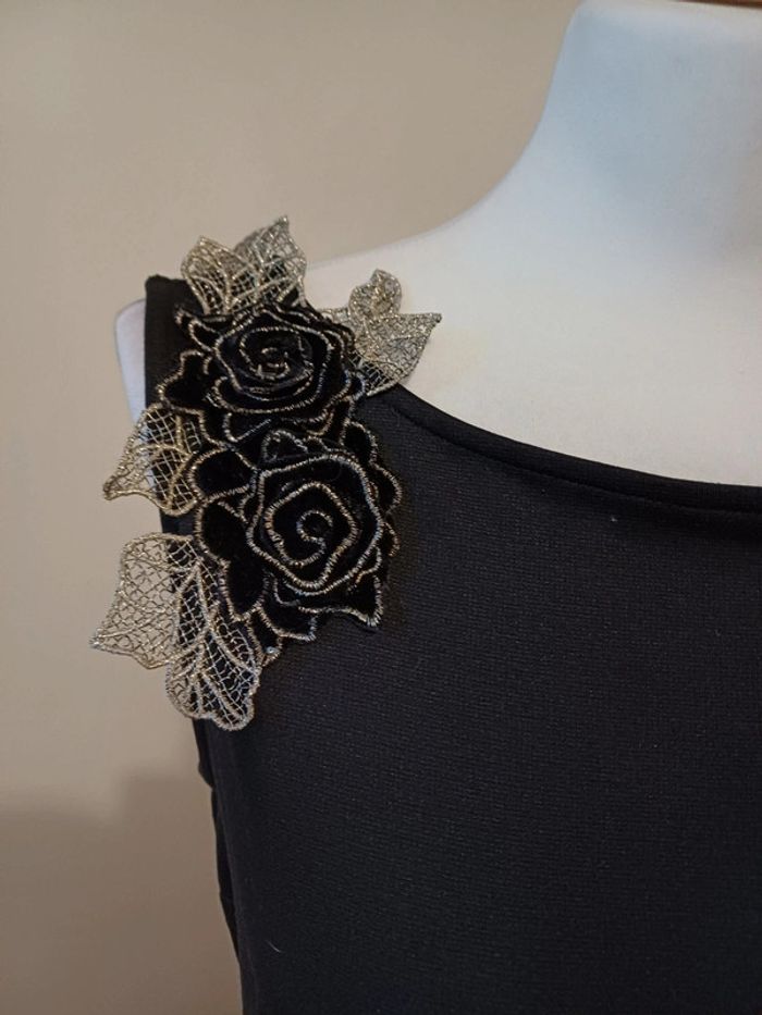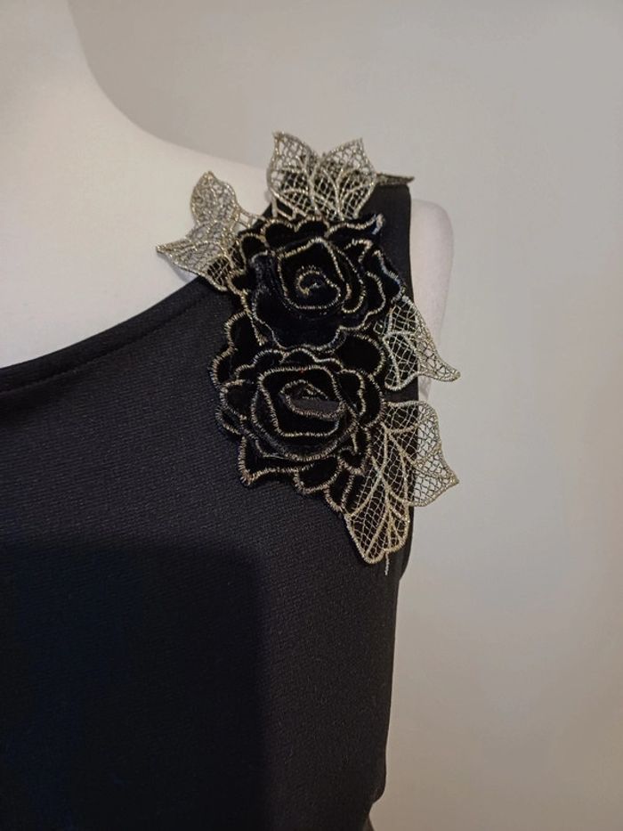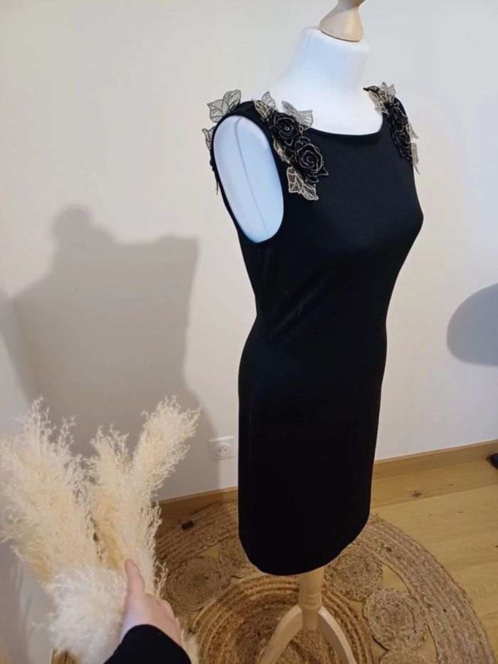 Robe noire chic avec fleurs aux épaules Yessica taille S 36 - photo numéro 2