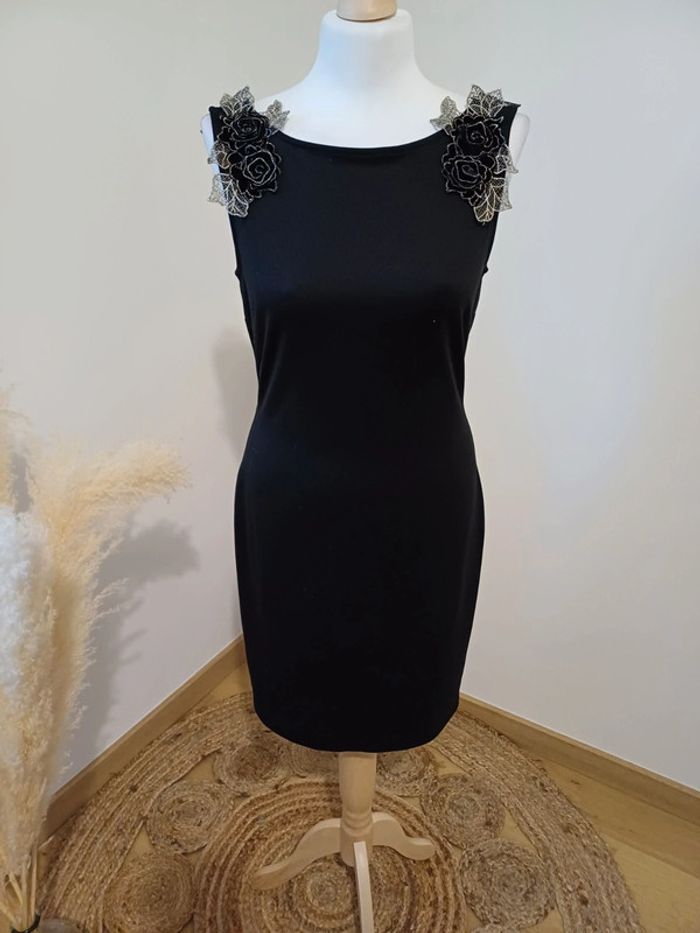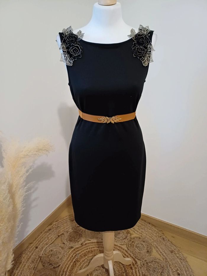 Robe noire chic avec fleurs aux épaules Yessica taille S 36 - photo numéro 1