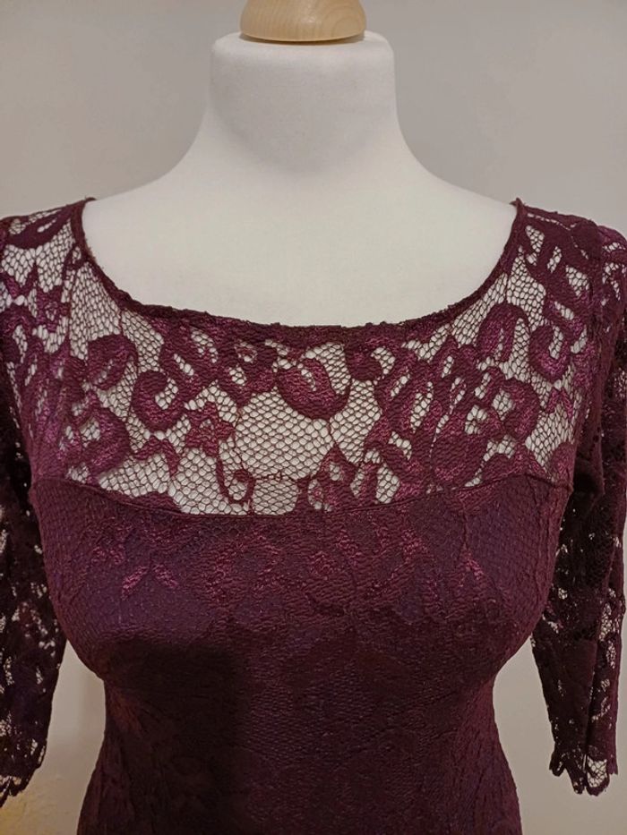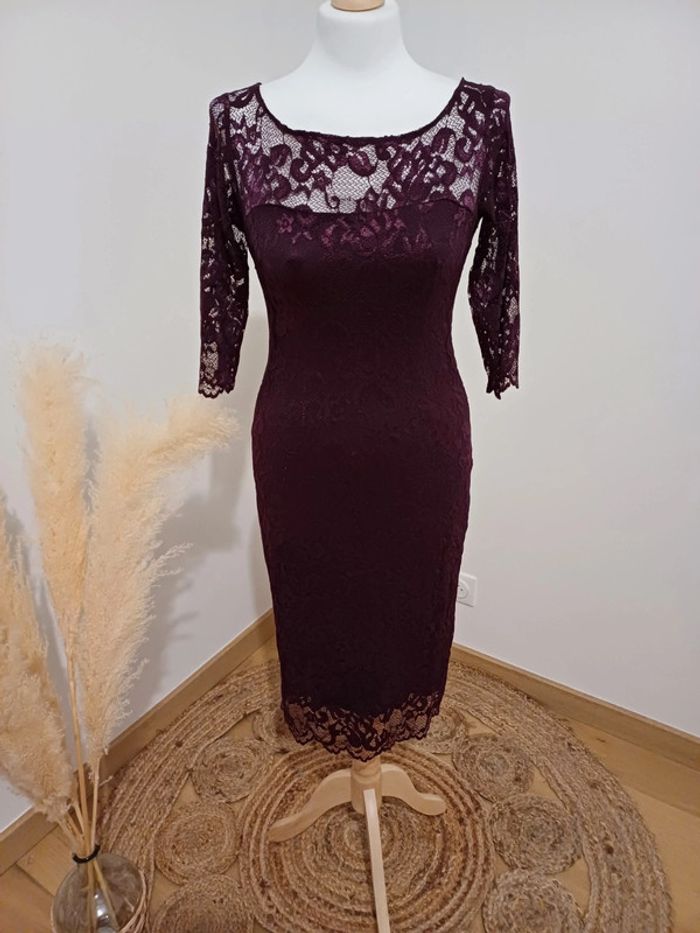Robe mi-longue moulante de soirée/cocktail en dentelle couleur Aubergine avec manches trois quarts et dos transparent en dentelle marque Alie Street London taille S 36. Très bon état. Prix neuf: 240€ Longueur: 105cm Composition: 94% Nylon et 6% Spandex. #paulineragot_femmetailles #paulineragot_robetailles #aliestreet #aliestreetlondon #manchestroisquarts #dentelle #Violet #bordeaux #aubergine #Prune #moulant #presducorps #doublée #dostransparent #simple #basic #basique #classic #classique #tendance #vintage #original #glamour #élégant #romantique #bohème #classe #chic #habillé #sortie #soirée #fete #cocktail #ceremonie #événement #misaison #automnehiver #printempsété #entretiendembauche #bureau #workinggirl #sortieentreamis #repasenfamille #dinerenamoureux #glamour #élégant #romantique #boheme #sexy #femmefatale #fetesdefindannée #Noël #saintvalentin #passion #rétro #jourdelan #réveillon #cadeau #ideedecadeau #cadeaudenoel #nouvelan
