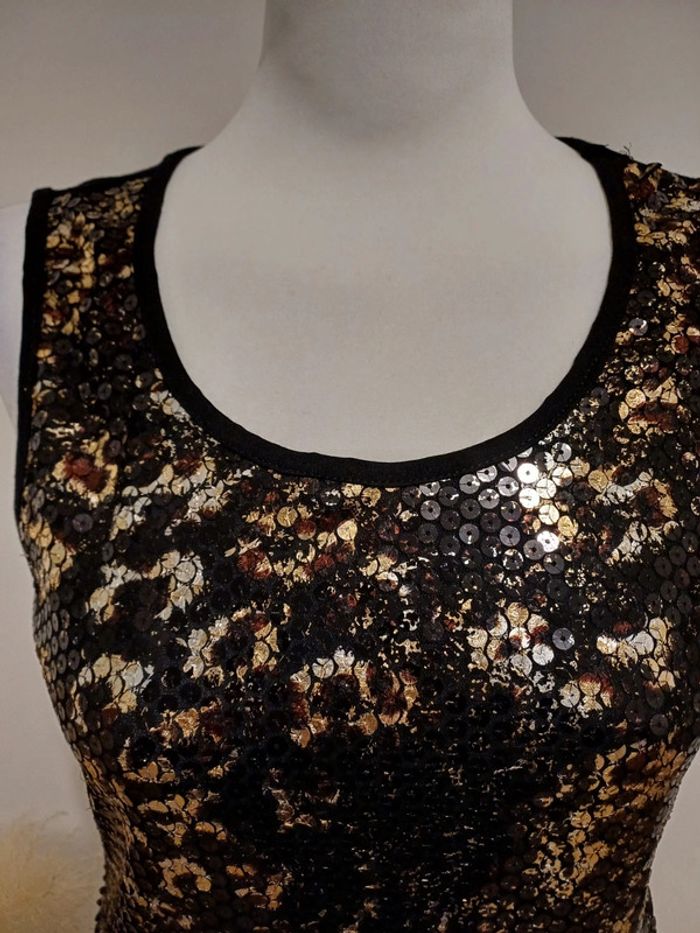 Robe courte de soirée à sequins sans manches avec motif Serpent, col rond et dos uni noir taille S/M 36/38. La ceinture n'est pas incluse. Très bon état. Longueur: 80cm Composition: 95% Coton et 5% Elasthane. #paulineragot_femmetailles #paulineragot_robetailles #paulineragot_femmetaillem #paulineragot_robetaillem #sequins #motifserpent #colrond #sansmanches #dosuni #simple #basic #basique #classic #classique #tendance #vintage #original #glamour #élégant #romantique #bohème #classe #chic #habillé #sortie #soirée #fete #cocktail #ceremonie #événement #misaison #automnehiver #printempsété #entretiendembauche #bureau #workinggirl #sortieentreamis #repasenfamille #dinerenamoureux #glamour #élégant #romantique #boheme #sexy #femmefatale #fetesdefindannée #Noël #saintvalentin #passion #rétro #jourdelan #réveillon #cadeau #ideedecadeau #cadeaudenoel #nouvelan