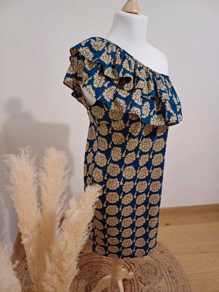 Robe bleue fleurie asymétrique Privée Tnl taille M 38
