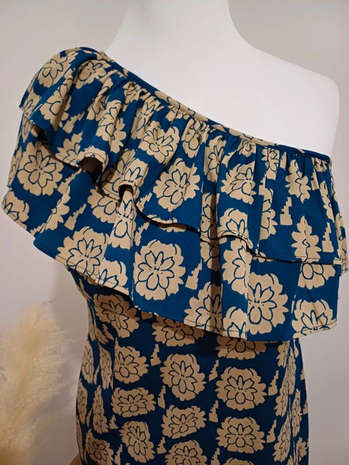 Robe bleue fleurie asymétrique Privée Tnl taille M 38 - photo numéro 7
