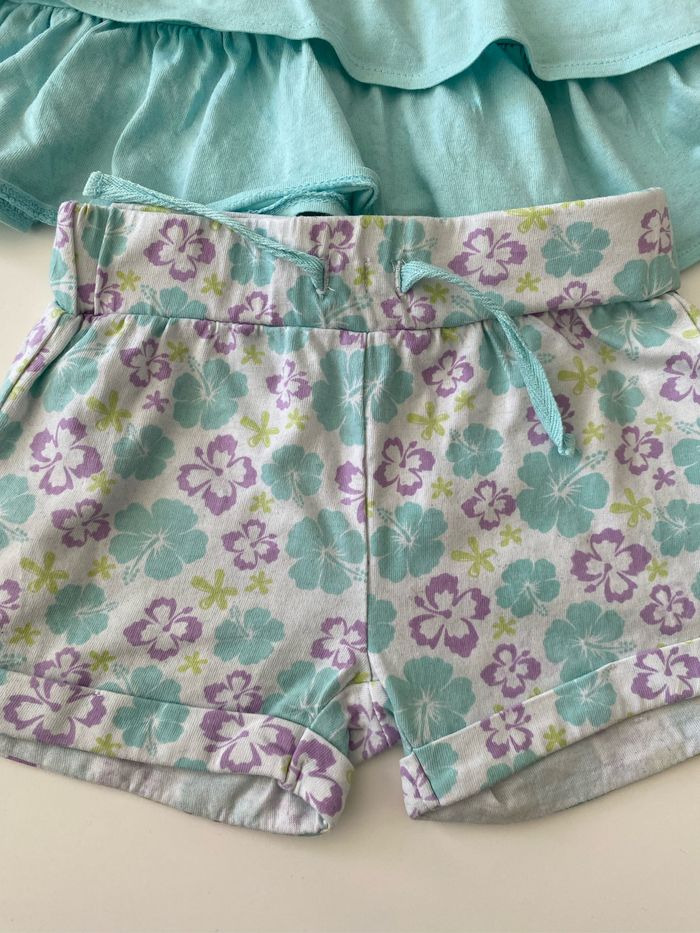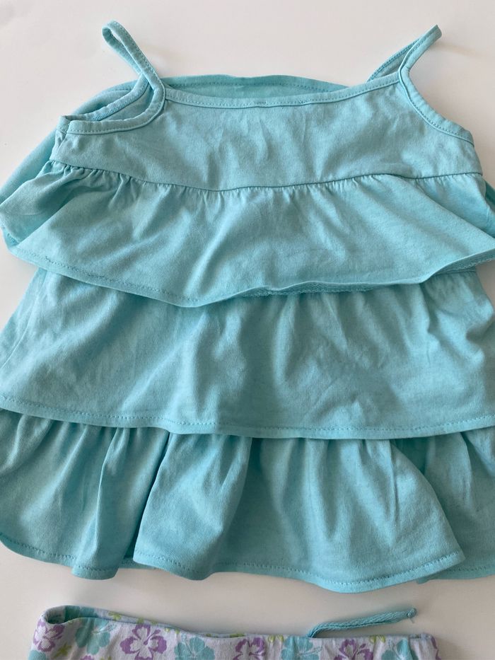 petit ensemble 2 ans , porté une seule fois. composé d’un short et d’un petit débardeur à volants