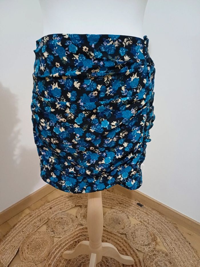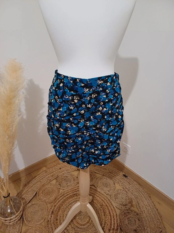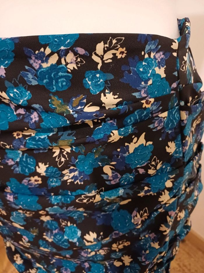 Jupe bleue fleurie froncée Zara taille M 38 - photo numéro 2