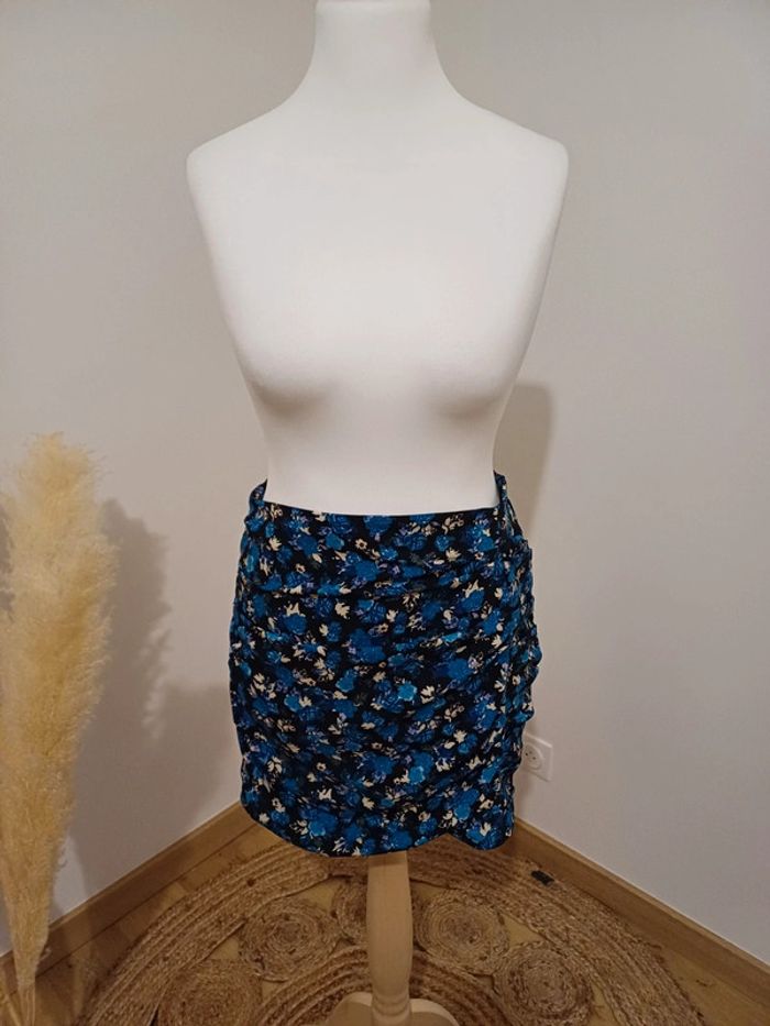 Jupe bleue fleurie froncée Zara taille M 38