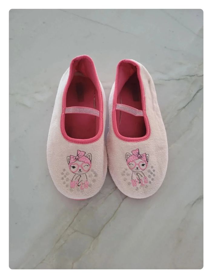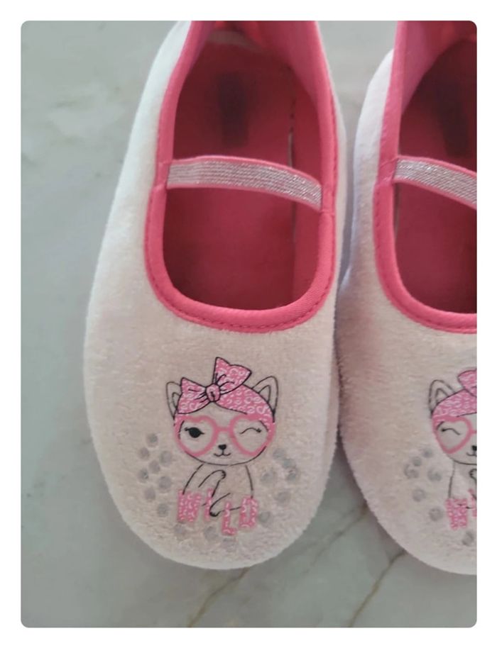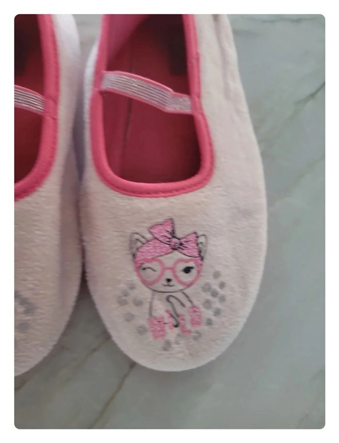 Chausson fille motif chat. Taille 35 Très bon état (Excepté 1 tâche grise sur le côté, voir dernière photo, d'où le prix !). #33coco_chaussures