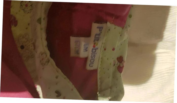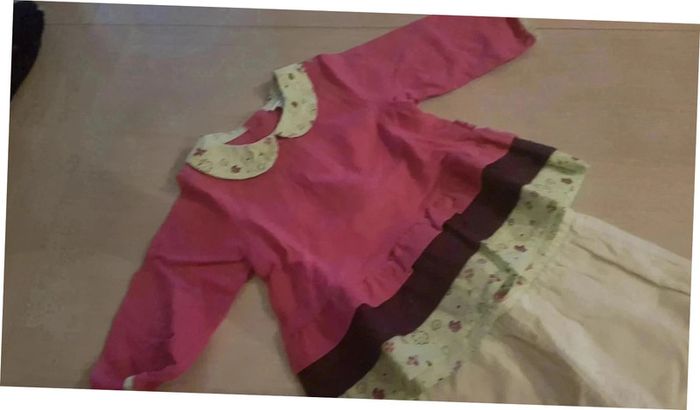 Ensemble pantalon en velours et haut manches longues Petit Bisou (Aubert) Tee shirt fermeture par pression. Rose et blanc. Taille 6 mois Très bon état (juste une tâche rose clair sur la ceinture du pantalon, voir dernière photo ) #33coco_fille6mois