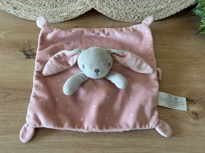Doudou plat lapin rose gris étoile simba toys