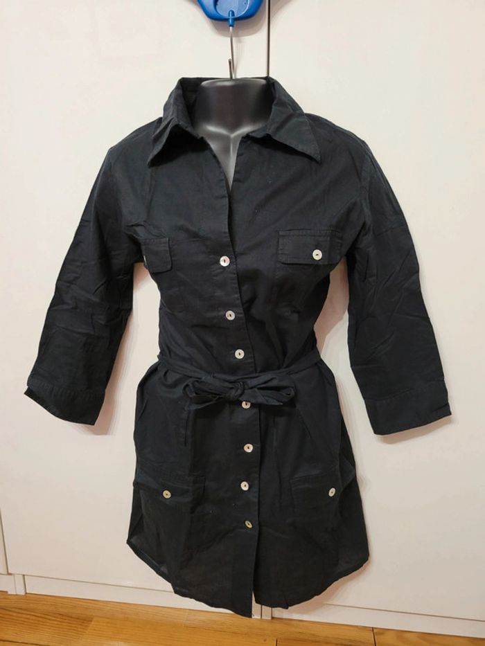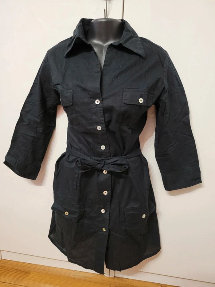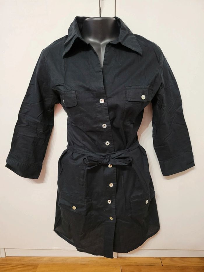 Haut Top chemise chemisier veste noir ceintrée ceinture à nouer taille S 36 - photo numéro 1