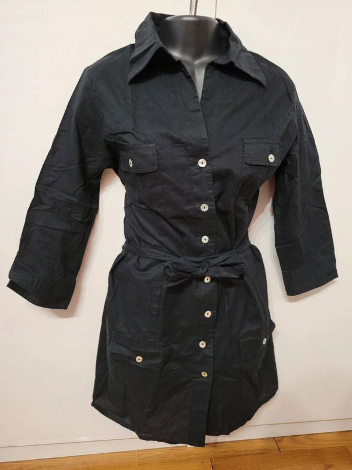 Haut Top chemise chemisier veste noir ceintrée ceinture à nouer taille S 36 - photo numéro 3