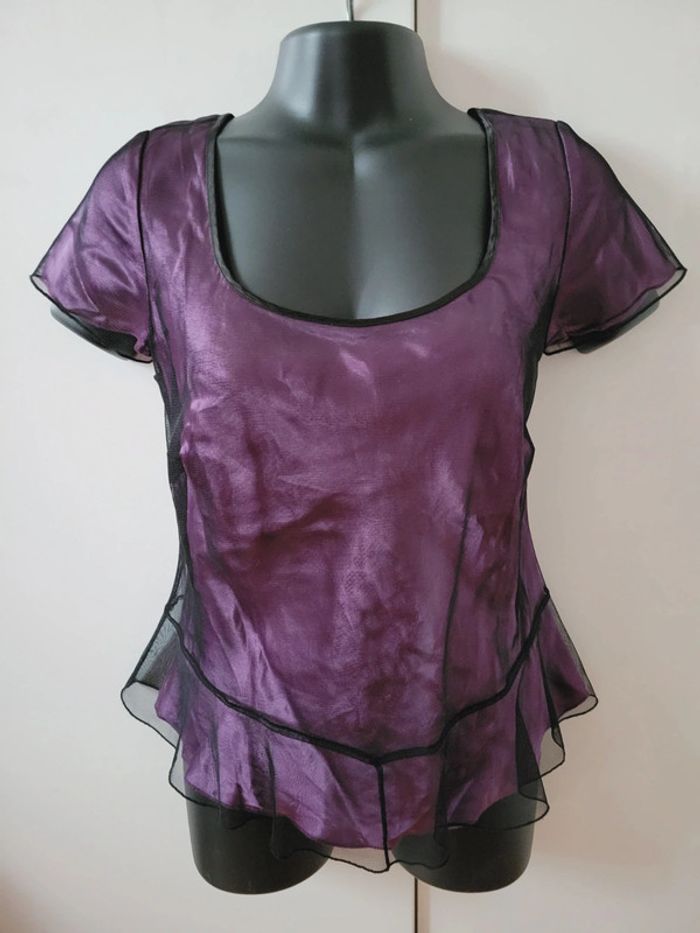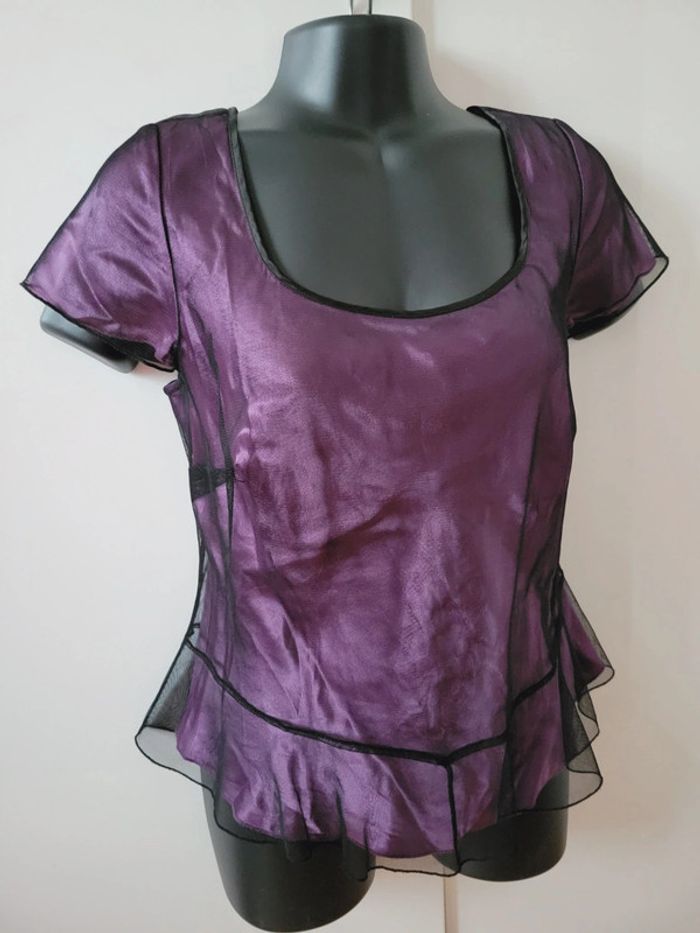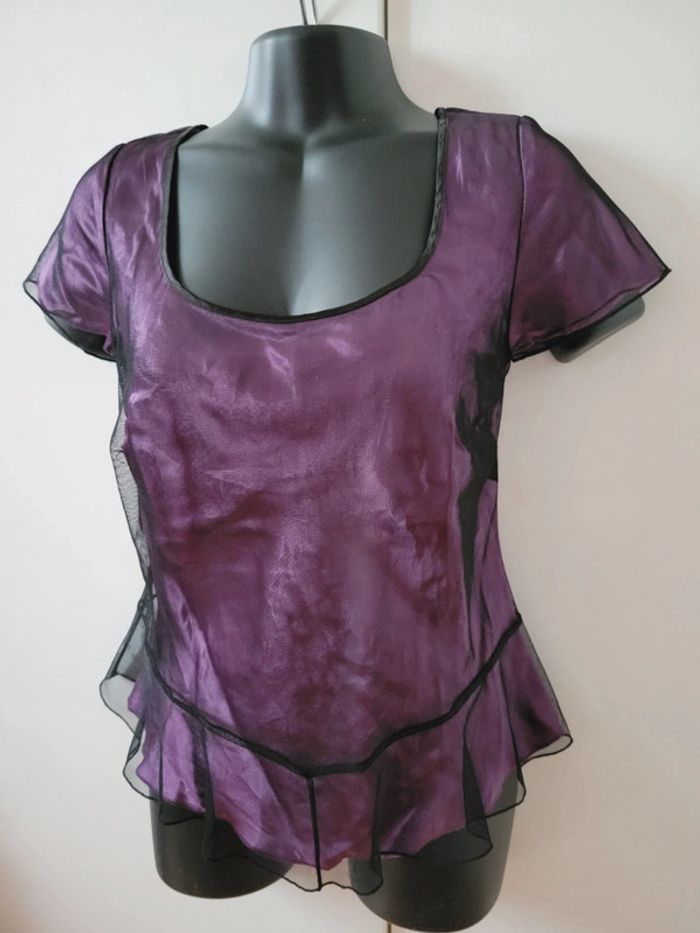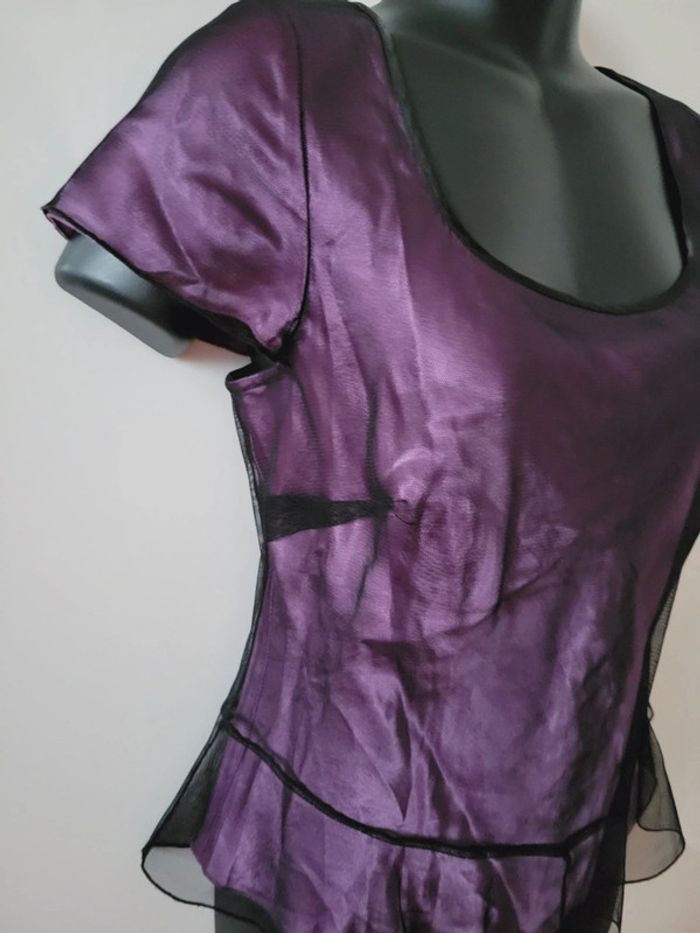 Haut Top tee shirt violet dentelle look gothique minuet coquette taille S 36 - photo numéro 4