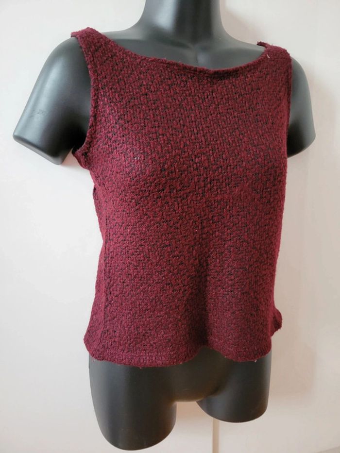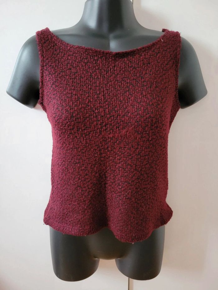 Tee shirt haut top pull sans manche rouge noir vintage ancien taille M 38 pull fin - photo numéro 1