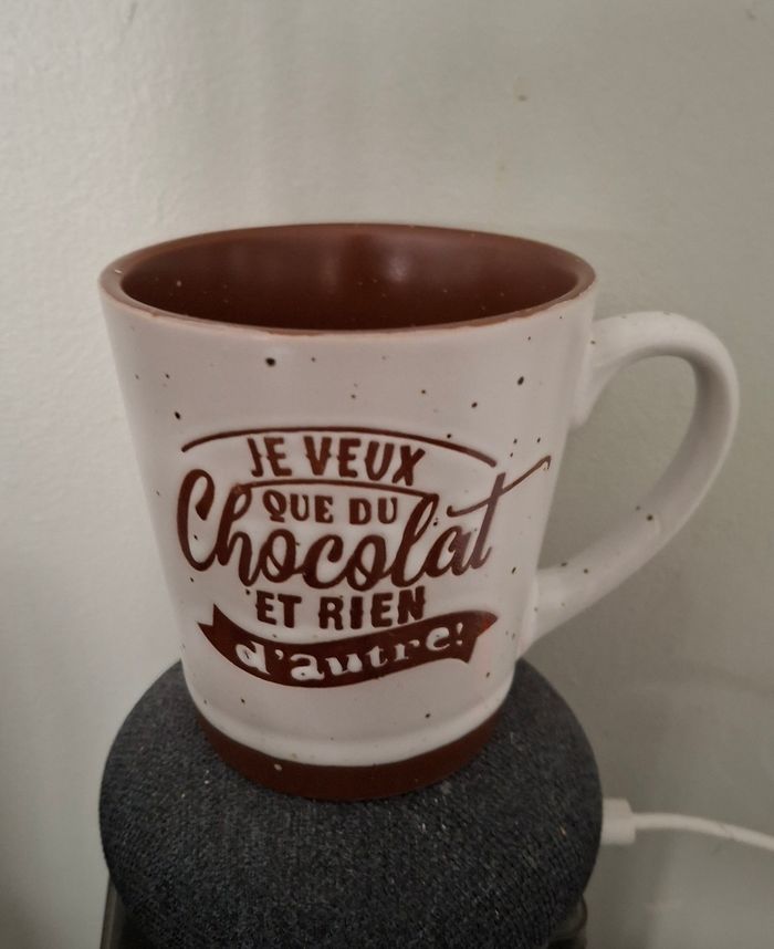 Tasse en céramique " je veux du chocolat et rien d'autre"...en excellent etat