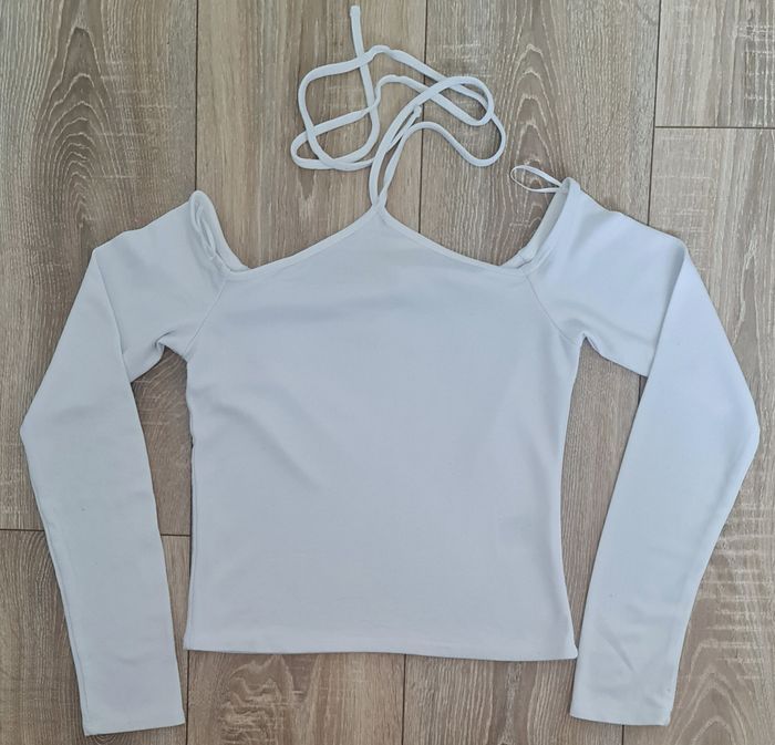 A la vente, en très bon état, ce joli petit crop top blanc, à manches longues et dénudés, de la marque "H&M". En semaine, cet article peut vous être déposé à l'Espace Européen de l'entreprise, Schiltigheim.