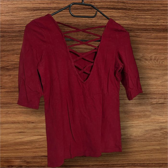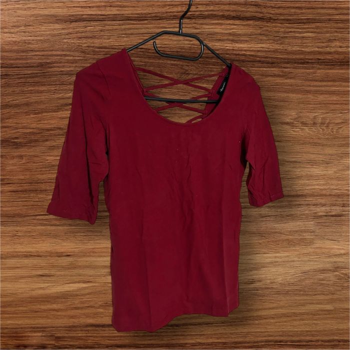 Haut manches mi-longues, Bordeaux, Bershka - 34/XS - photo numéro 1
