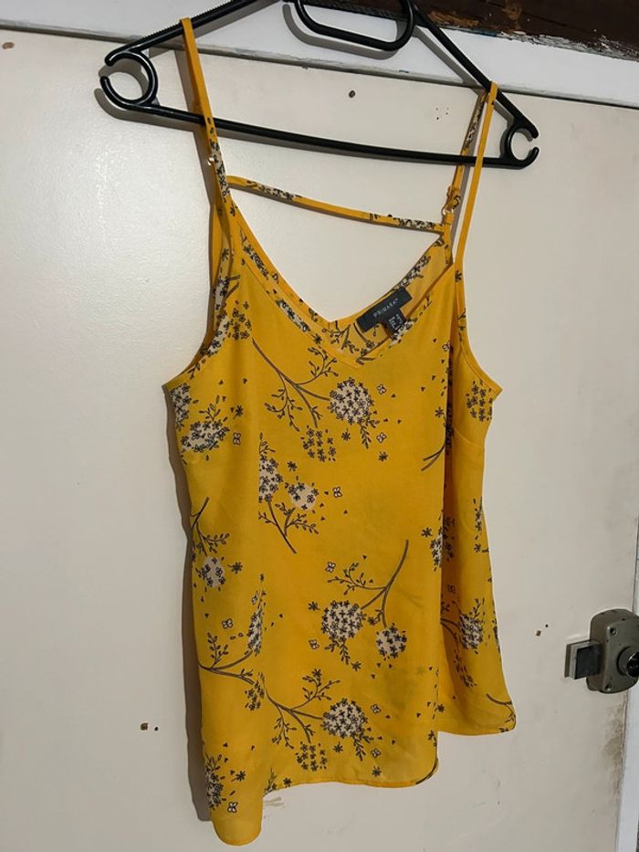 👚Top débardeur fleuris 💛 Jaune ➰Très bon état 🏷️ Primark 📏 Taille : 38/M ⚖️ Négociations possibles. 🔆 Réduction activées. 🎁 Cadeaux pour l’achat d’un lot. 🌈 Envoi rapide et soigné. 📦 Dépot uniquement Mondial Relay ou Chronopost. ❌ Colissimo à éviter, merci. ——— #vetementsfemme_leaadorable #femme38m_leaadorable N°513
