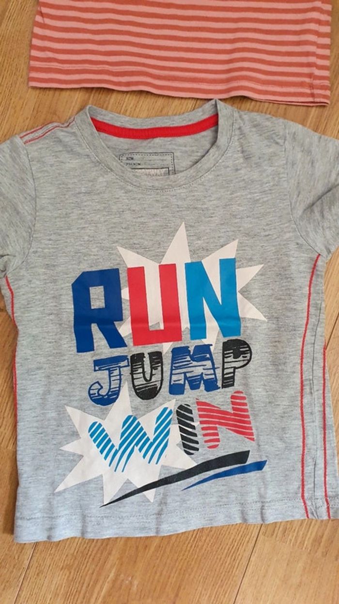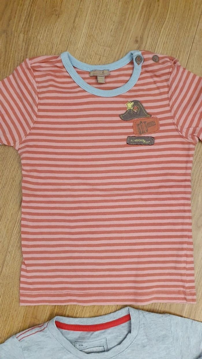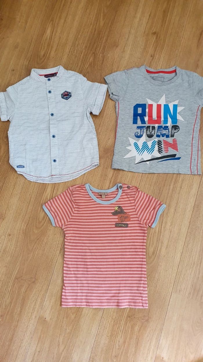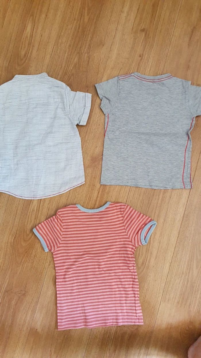 il comprend une chemisette sergent major en excellent un tee shirt sportway en tbe un tee shirt grain de blé orange et corail en tbe j ai un autre lot de 3 ans n hesitez pas a regrouper