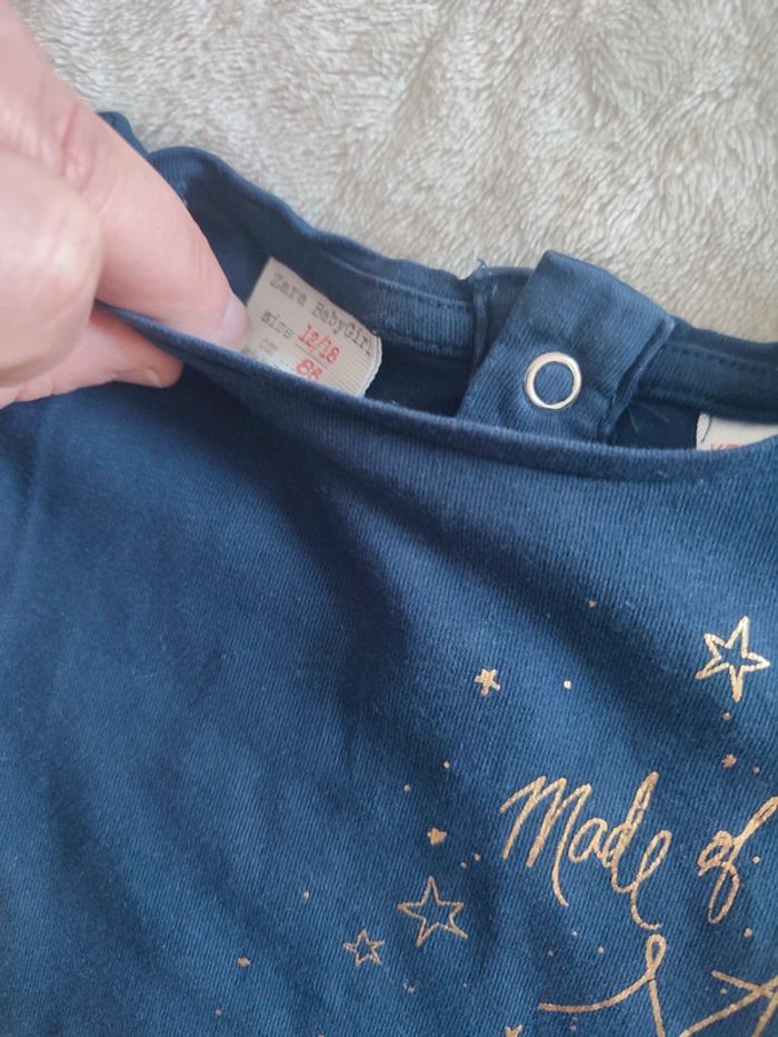 Haut Zara manches longues Couleur marine avec dessins dorés En très bon état Taille 12-18 mois Envoi rapide et soigné 💫 Réduction sur lot ⚠️ Maison non fumeur 🚭 Dépôts des colis du lundi au vendredi 📦 A bientôt 😘