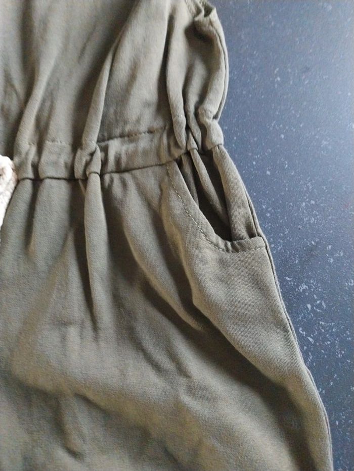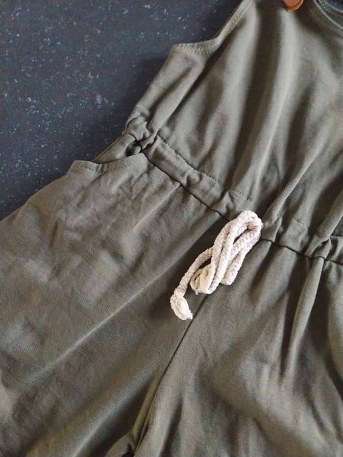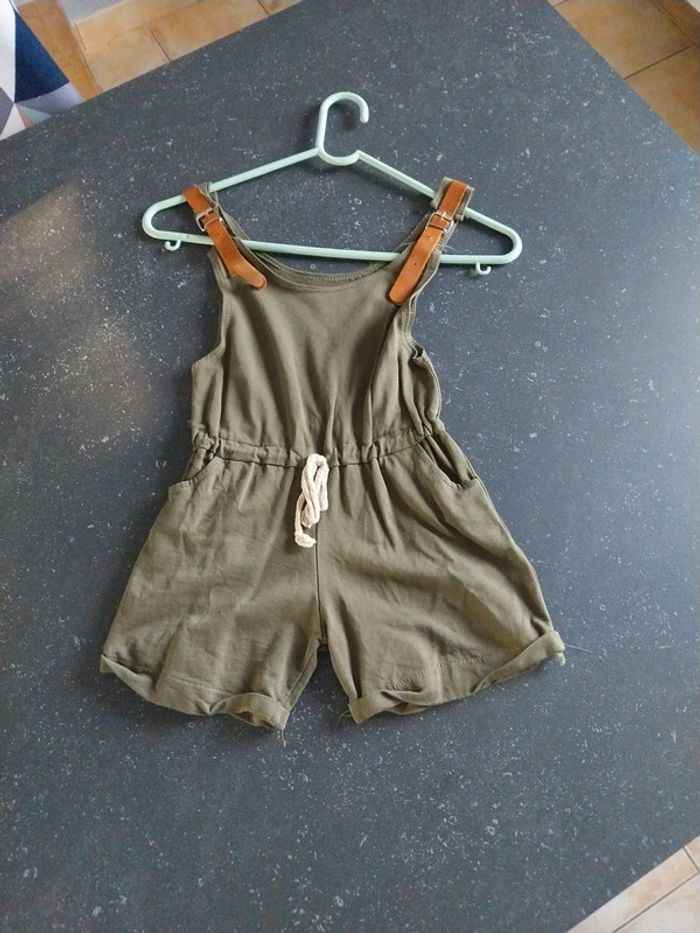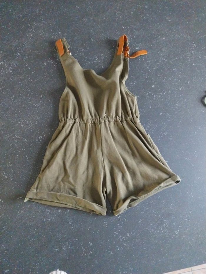 #10ansfillevanessa357 Combishort kaki avec bretelles marrons 10 ans