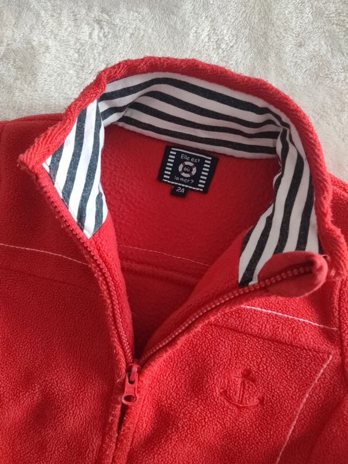 Veste polaire rouge unisexe Marque: elle est où la mer Taille 2 ans En très bon état Envoi rapide et soigné 💫 Réduction sur lot ⚠️ Maison non fumeur 🚭 Dépôts des colis du lundi au vendredi 📦 A bientôt 😉