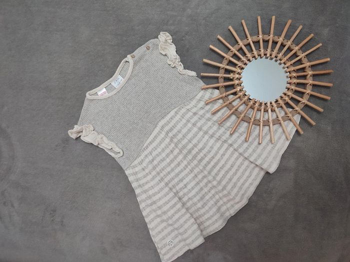 Jolie robe Zara Couleur grise et crème En très bon état Taille 18/24 mois Envoie rapide et soigné 💫 Réduction sur lot ⚠️ Dépôts des colis du lundi au vendredi 📦 A bientôt 😚