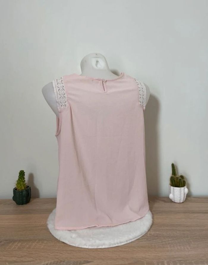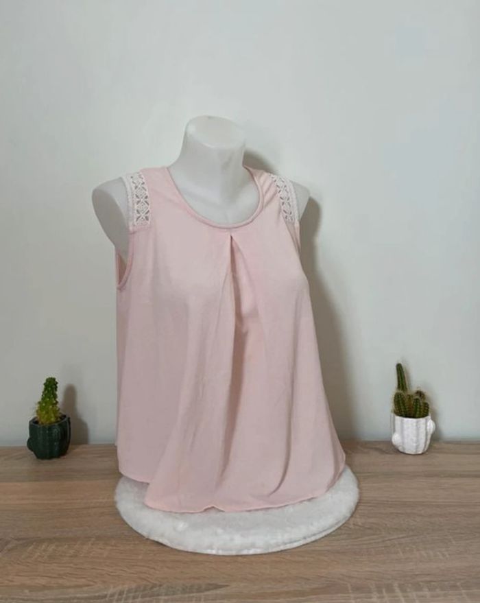 En très bon état général, 1 seul mini-défaut (1 point noir) à l'arrière (photo 4) 🌸 Couleur rose pâle 🪷 Coupe ample ✨ Bretelles en partie en dentelle 🍒 Bouton derrière le cou