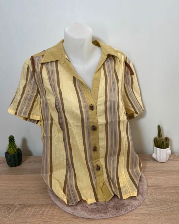 Chemise manches courtes jaune à rayures - photo numéro 2