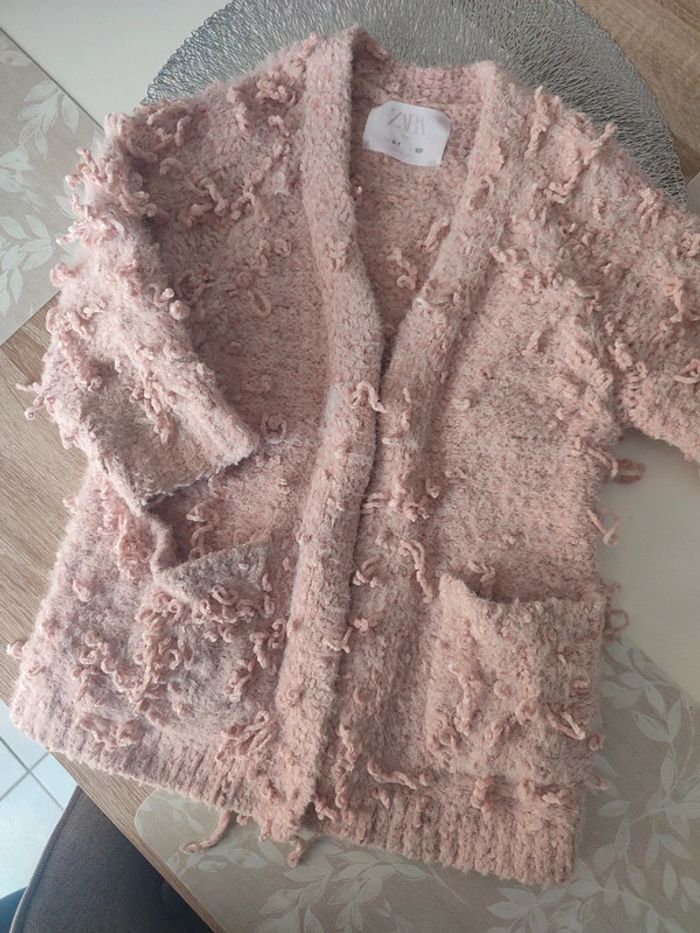Très joli gilet mi long épais Zara En très bon état Couleur rose poudré Taille 6-7 ans Envoie rapide et soigné 💫 Réduction sur lot ⚠️ Maison non fumeur 🚭 Dépôts des colis du lundi au vendredi 📦 A bientôt 😉