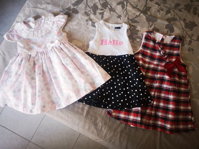 Lot de 3 robes Différentes marques Taille 18 mois Très bon état Réduction sur lot ⚠️ Envoie rapide et soigné 👌🏻 A bientôt ☺️
